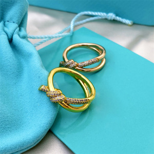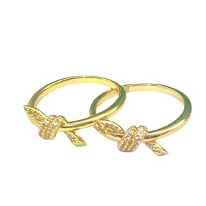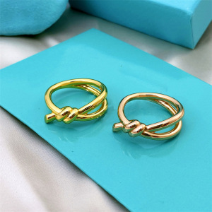 T家打结绳蝴蝶结戒指女士18k玫瑰金扭绳对戒少女欧美时尚网红指环