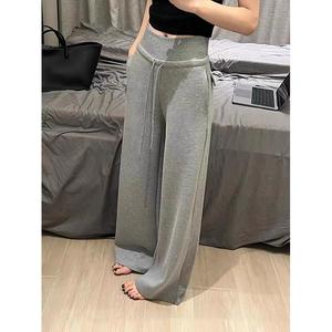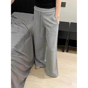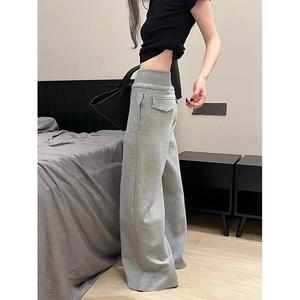 2025百搭设计感宽腰头高腰垂感抽绳休闲卫裤女拖地长裤裤阔腿裤女