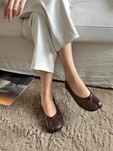 平底豆豆鞋女2025年春季新款韩版小众复古个性分趾猪蹄软底芭蕾鞋