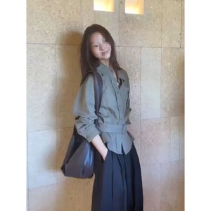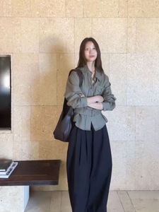 韩系设计感军绿色衬衫休闲长裤套装小众收腰显瘦气质两件套女