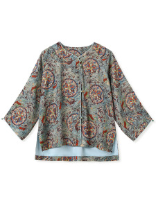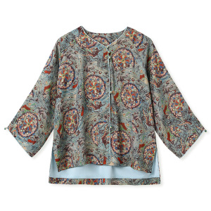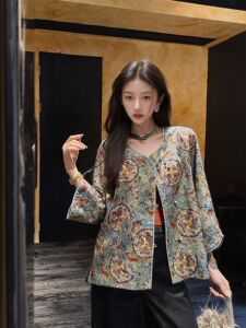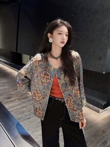 秋季新款国风新中式女装人丝上衣高端斜襟金丝印花刺绣外套 N8042