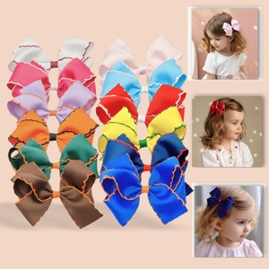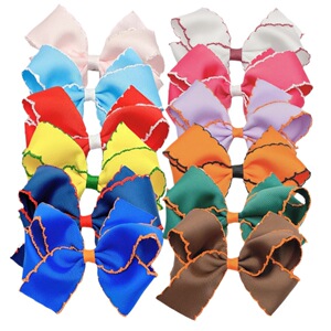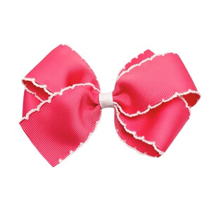 儿童勾边立体蝴蝶结发夹 螺纹织带翘翘花边夹 手工锁边全包夹头饰