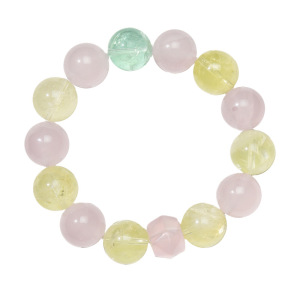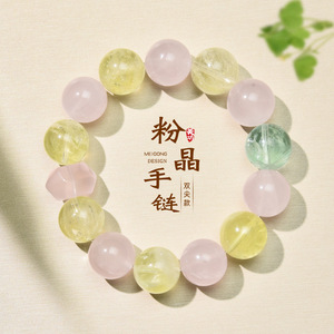 天然粉晶手串柠檬黄水晶手链双尖设计手工圆珠时尚清新小红书抖音
