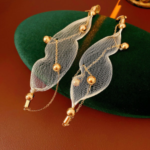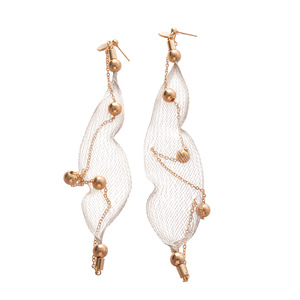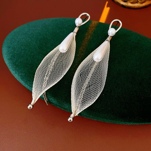 银针水滴网格珍珠流苏耳环女时尚百搭耳钉个性夸张耳饰小众高级感