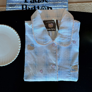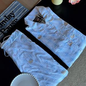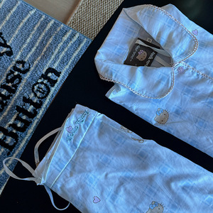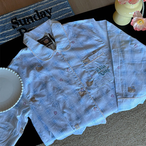 野家同款蓝格子KT莱赛尔天丝春夏睡衣女2025新长袖长裤套装家居服