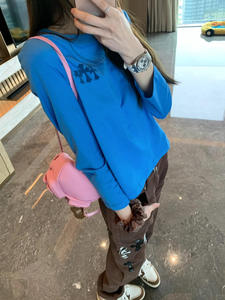 高版本~克罗植绒梵文十字字母圆领T恤女秋冬宽松百搭潮牌长袖内搭