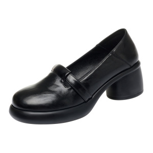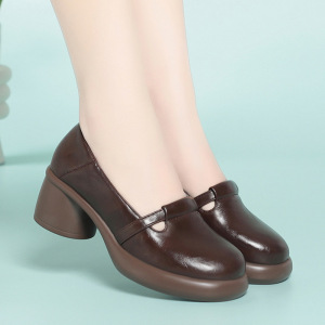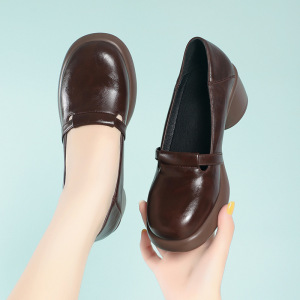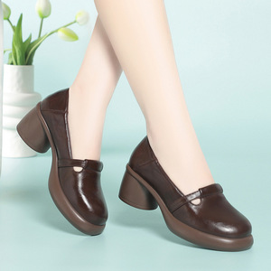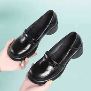 秋季软底妈妈鞋舒适粗跟单鞋厚底防水台女皮鞋中高跟女鞋一件代发