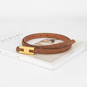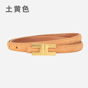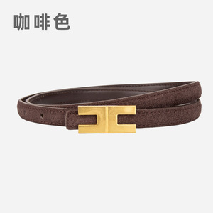 绒面磨砂真皮1.5cm女士腰带小众字母装饰牛仔裤带高级牛皮皮带女