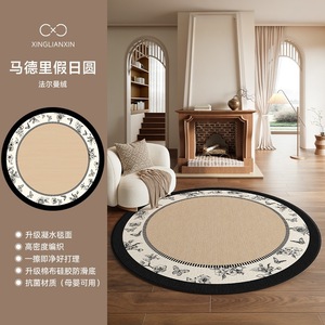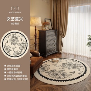 圆形地毯客厅中古风2025新款法式复古卧室床边衣帽间椅子摇椅地垫