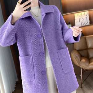 藕荷色 中长款娃娃领大衣外套