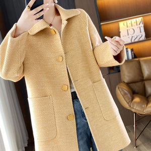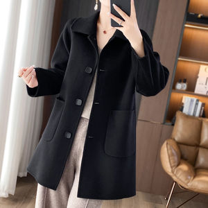 羊毛双面呢中老年妈妈大衣女士冬季新款甜美复古娃娃领长款外套女