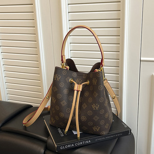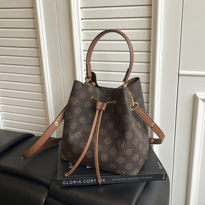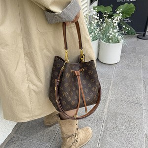 跨境高级感包包女2025新款大容量包复古老花抽绳水桶包女士斜挎包