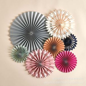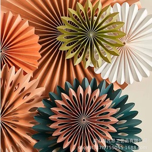 跨境派对装饰折纸纸扇花马卡龙色纸扇厂家直销生日派对聚会氛围