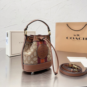 蔻家新款Dempsey15迷你抽绳水桶包老花复古手提包单肩斜挎托特包