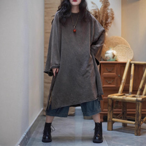复古炒色毛边做旧连衣裙女2025夏季新款200斤宽松大褂中长款遮肉