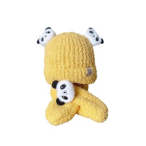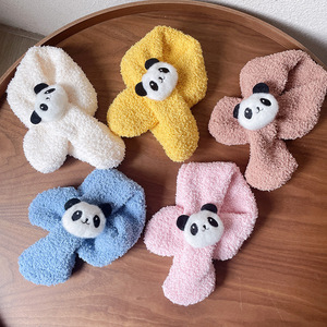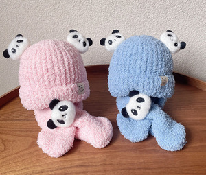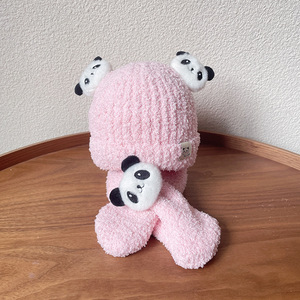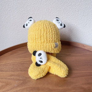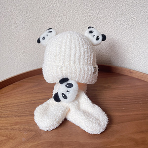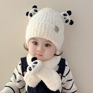 毛绒帽子小熊猫婴儿帽子围巾一体两件套秋冬季男女宝宝冬天保暖