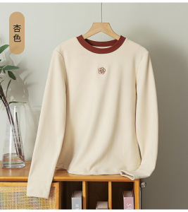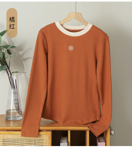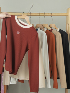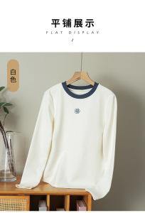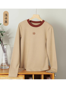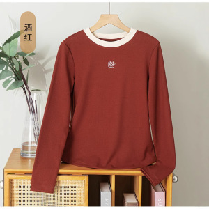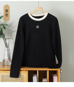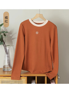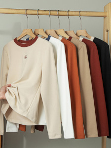 高级感刺绣长袖T恤上衣女2025新款秋冬季圆领纯色内搭修身打底衫