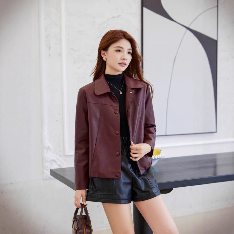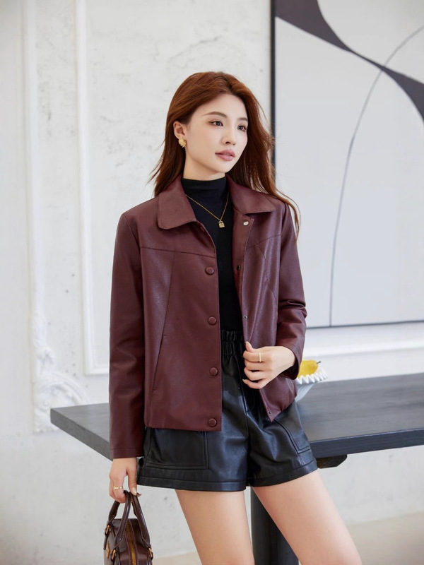 皮衣女正品秋季女短软皮外套时尚百搭显瘦洋气中老年女装pu皮夹克