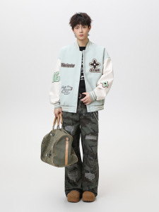 捷展YOU货|菱形绣花美式运动棒球服25秋季新品美式飞行夹克外套男