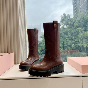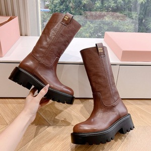 西部牛仔靴走秀款时髦百搭秋冬新款擦色做旧厚底增高中筒靴女