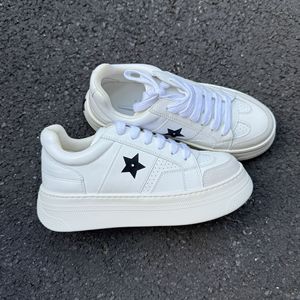 2025春夏秋新款小白鞋黑白拼色厚底增高女鞋真皮星星休闲时尚板鞋