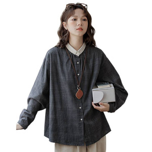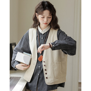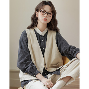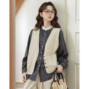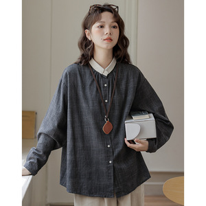 文艺复古宽松休闲撞色领叠穿格纹衬衫女百搭法式别致绝美小上衣