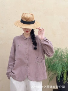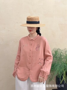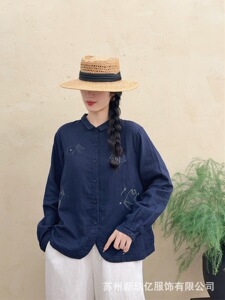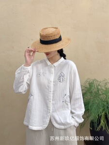 2025秋季新款复古文艺棉纱刺绣圆领单排包扣宽松显瘦气质开衫女
