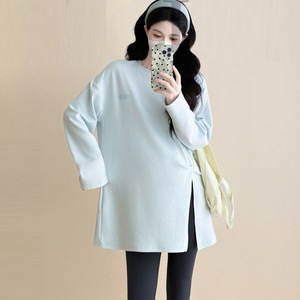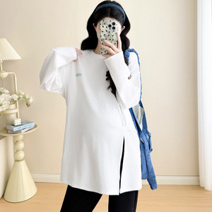 孕妇纯棉T恤外穿秋2025秋装新款宽松大码孕妇装中长款长袖上衣