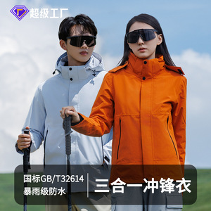 新国标冲锋衣男女情侣款三合一抓绒内胆保暖防水户外登山服两件套
