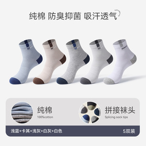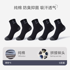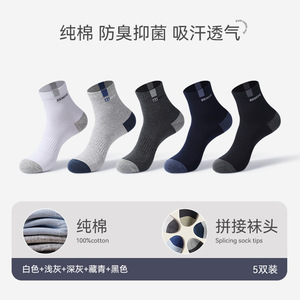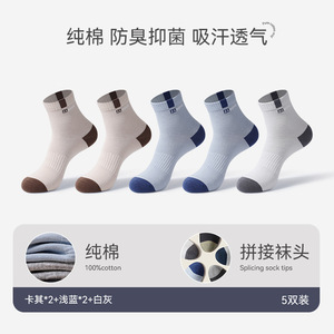 【7A抗菌】猫人袜子男款秋冬100%纯棉透气吸汗防臭运动男士中筒袜