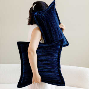 『极光』复古蓝轻奢高级感靠垫床头靠枕沙发客厅丝绒褶皱肌理抱枕