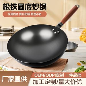 无涂层铁锅氮化防锈不粘无涂层铁锅圆底炒菜锅无油烟厂家批发