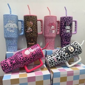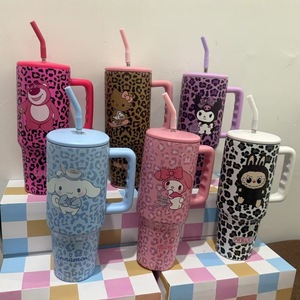 新款高颜值时尚豹纹手柄杯304不锈钢吸管杯巨无霸冰霸杯必须车载