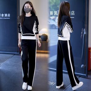 时尚休闲运动卫衣套装女2025年秋季新款洋气时髦减龄阔腿裤两件套