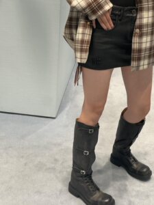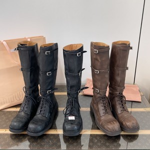 【广州鼎货】miu~带扣复古粗跟长筒骑士靴女真皮厚底长靴高筒靴