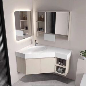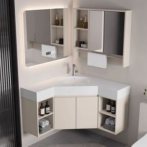 三角浴室柜可定小户型转角异型实木简约卫生间无缝盆洗手盆柜组合