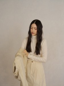 米白色高领打底衫女2025秋冬季新款德绒堆堆领修身内搭高级感上衣