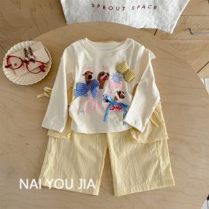 奶油秋套装2025新款多巴胺洋气小童秋装宝宝工装裤两件套运动衣服