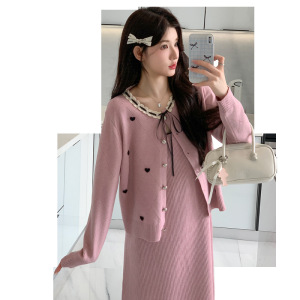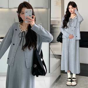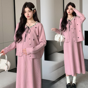 实拍现货~孕妇装秋季宽松大码时尚甜美减龄开衫+吊带裙两件套