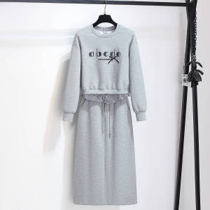 假两件拼接长袖T恤卫衣半身裙子女两件套2025秋装新款休闲连衣裙