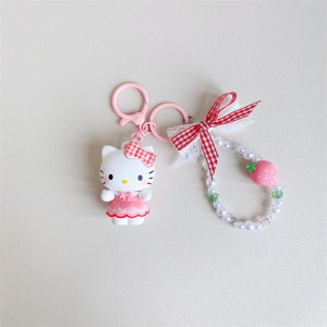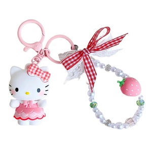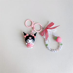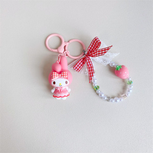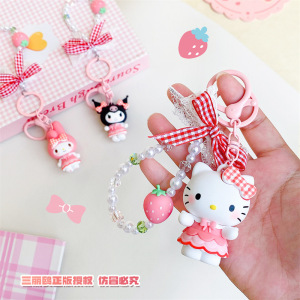 正版三丽鸥格纹草莓系列库洛米汽车钥匙扣链可爱公仔书包挂件饰品