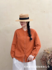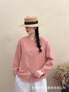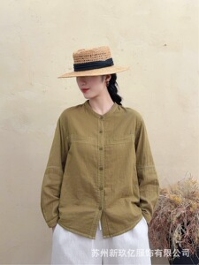 2025早秋新款立领棉纱衬衫女韩 版显瘦休闲衬衣纯色简约长袖上衣