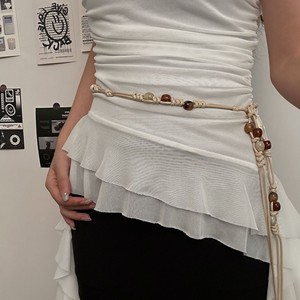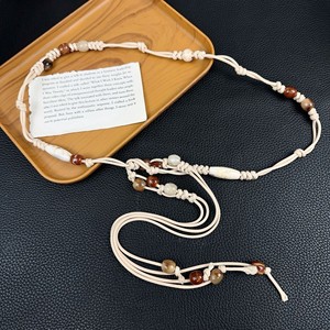 波西米亚蜡绳编织木珠腰链女民族风复古简约腰带小众设计百搭配饰