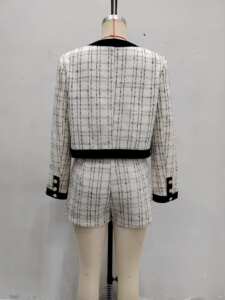 新款秋冬季欧美女装跨境亚马逊小香风开衫纽扣外套上衣短裤套装