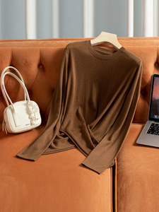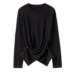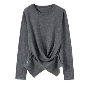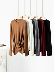 【慵秋织暖】前片交叉设计款全羊毛针织衫女薄款长袖套头慵懒毛衣