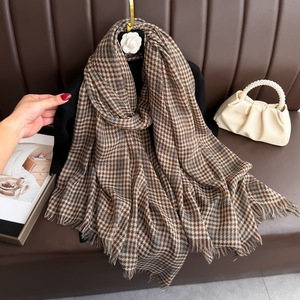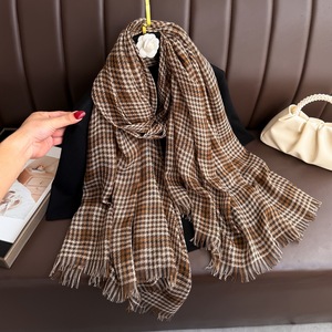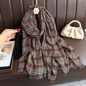 2025新款格子丝棉围巾女休闲百搭秋冬季韩版千鸟格保暖围脖长巾