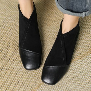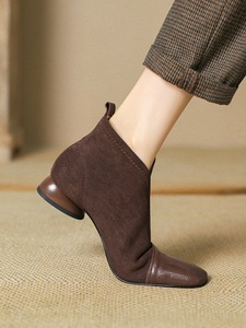 法式设计拼接时尚百搭方头时装短靴女2025秋冬新款短筒靴