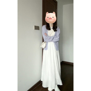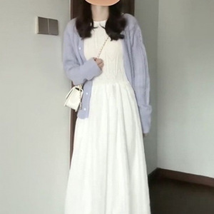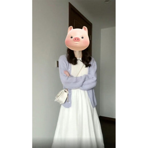 秋季约会茶歇法式桔梗多巴胺紫色针织开衫连衣裙子两件套装女