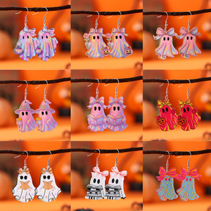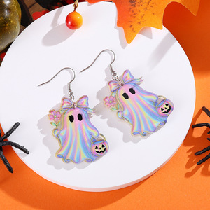 跨境新款万圣节哥特风彩色蝴蝶结幽灵吊坠耳环亚克力吊坠派对耳饰