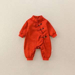 国风女宝宝秋装连体衣新生儿中式汉服红色喜庆满月百天周岁礼爬服